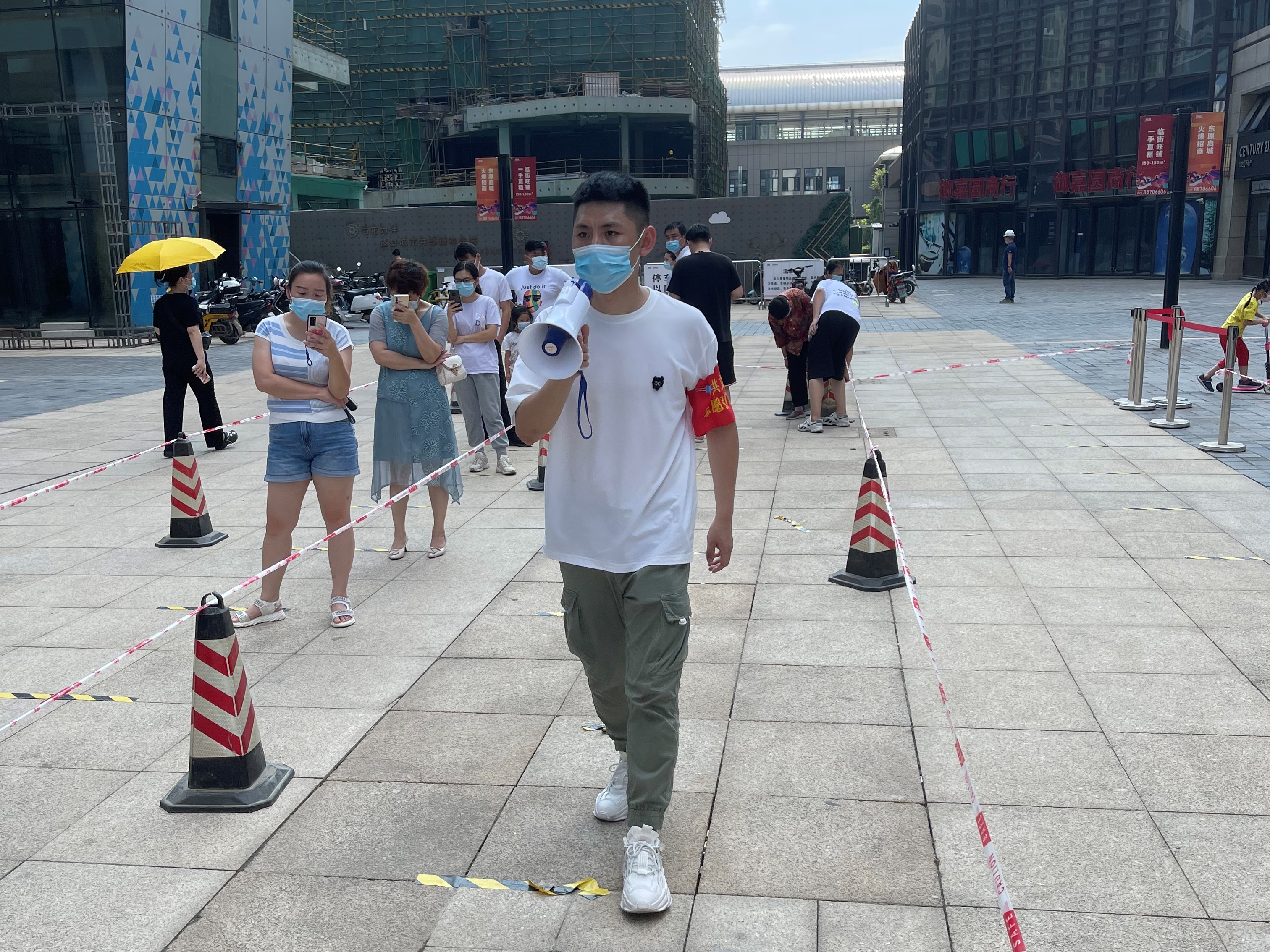 “請大家戴好口罩,保持好安全距離!”“請有序排隊等待檢測,如有身體不適,請盡快聯系志愿者!”在炎炎夏日的高溫下,黨員們耐心地向社區居民告知注意事項,維護好現場秩序,組織登記、測量體溫,每時段檢測完成后及時疏散,確保核酸檢測安全、有序進行。經過3天的努力,下沉黨員們協助勝利社區順利、高效完成了全員核酸檢測。