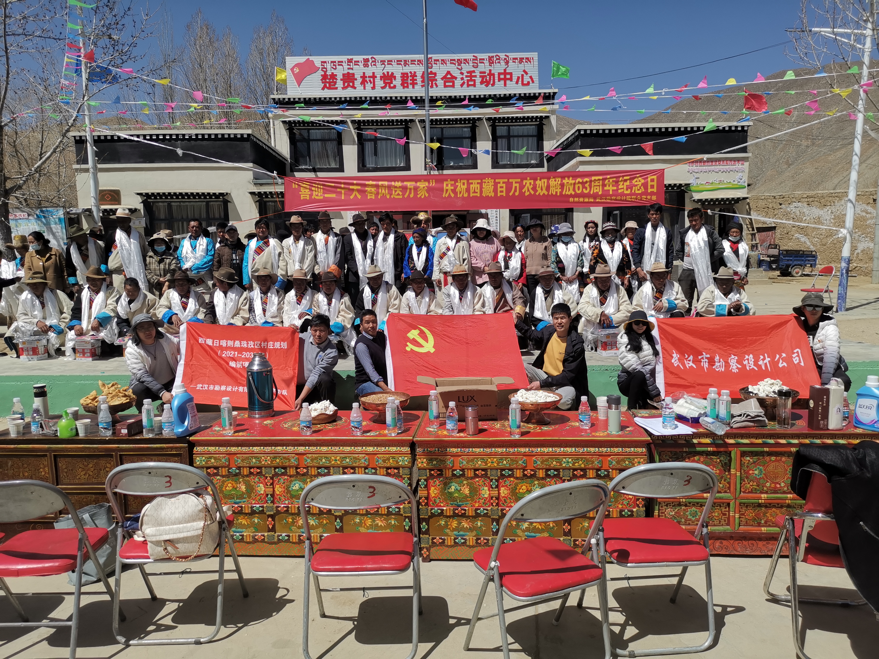 為慶祝西藏百萬農(nóng)奴解放63周年,充分展現(xiàn)西藏民主改革以來社會經(jīng)濟發(fā)展取得的突出成就,3月27日上午,項目黨員突擊隊參與了桑珠孜區(qū)自然資源局、東嘎鄉(xiāng)楚貴村黨支部及駐村工作隊聯(lián)合開展“建設(shè)美麗幸福西藏,共圓偉大復(fù)興夢想——紀念西藏百萬農(nóng)奴解放63周年”聯(lián)合主題黨日活動。